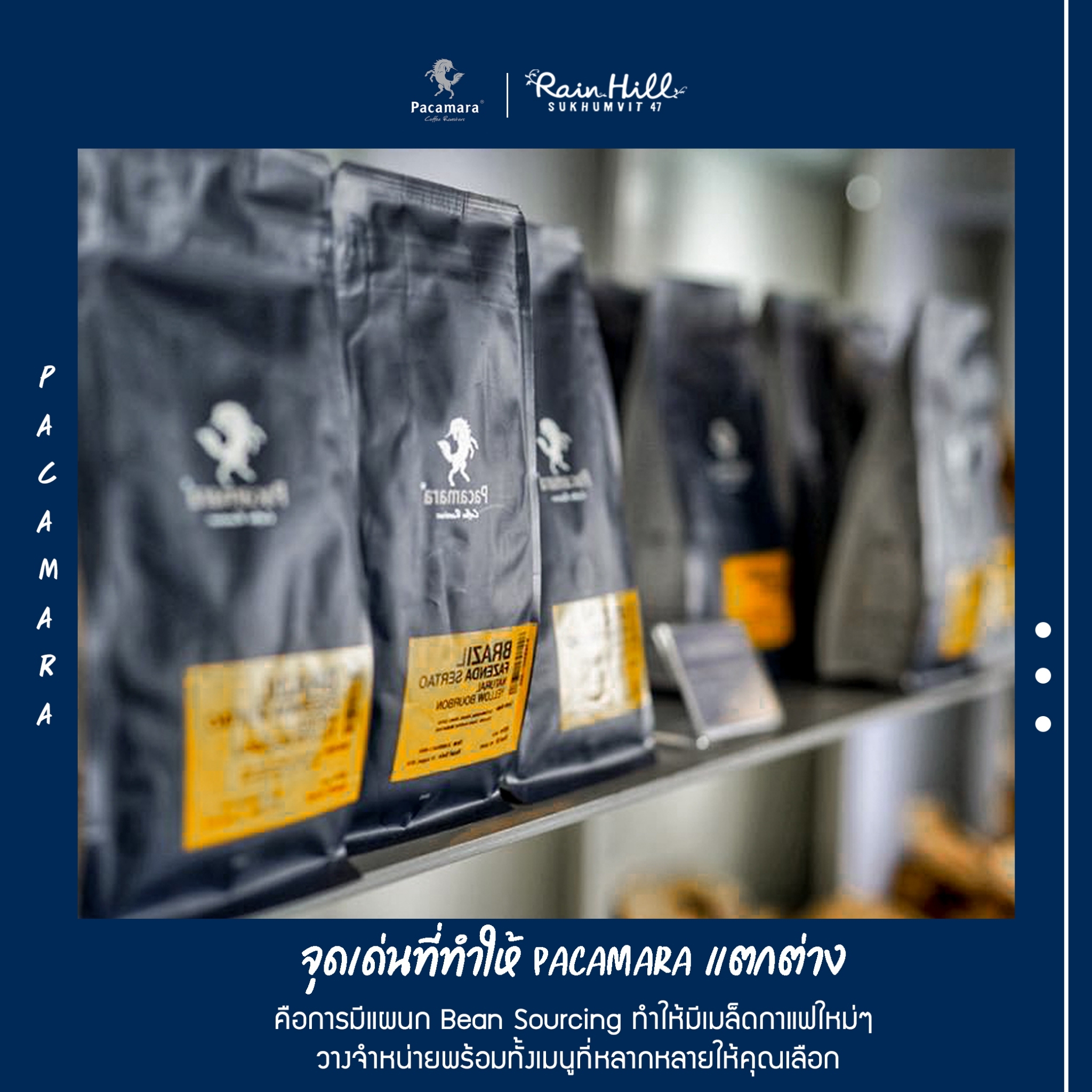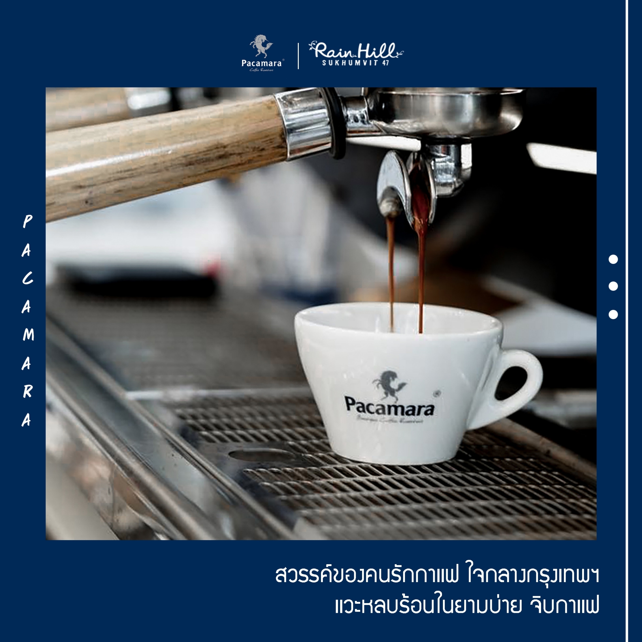 กาแฟเก๋ๆ ชิคๆ ที่มาพร้อมกับเมล็ดกาแฟชั้นยอด กาแฟของที่นี่ ต้องบอกเลยว่าไม่เป็นรองใครแน่นอน เพราะ Pacamara เป็นเจ้าเดียวในไทยที่ประมูลเมล็ดกาแฟขึ้นชื่อของโลกอย่าง Panama Geisha (ปานามา เกอิชา) มาได้เป็นผู้จำหน่ายเจ้าเดียวในประเทศ แถมยังมีเมล็ดกาแฟจากแหล่งต่างๆ ทั่วมุมโลก ที่นี่ไม่ได้มีดีแค่เพียงรสชาติ แต่บรรยากาศร้านก็ดี๊ดีซะจนต้องหยิบกล้องขึ้นมาถ่ายรูป